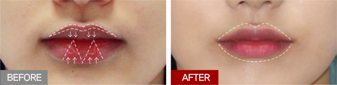Lip reduction surgery is to reduce the size and reshape the oversized lips who have an unbalanced appearance. Adjusts the amount of resection of the lips to create ideal lip thickness and ratio. HYUNDAI AESTHETICS can apply effective lip reduction procedures to give the exact proportions you’ve been seeking.